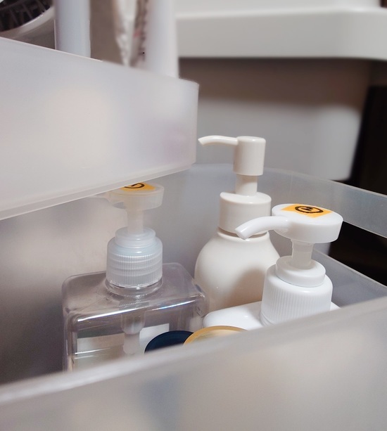 再生ポリプロピレン入りメイクボックスに化粧品類を入れ、1/4のをフタにして小物類を入れて使用していますが、無印良品の化粧水、乳液等ボトルの高さがあるのでフタができず、結局PET詰替ボトル280mlを購入して詰め替えています。なんだか無駄な気がするのです…